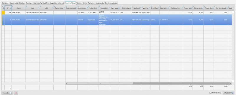 Possibilité de filtrer les interventions, mais aussi de visualiser ou modifier une intervention par un simple double-clic (selon vos droits).