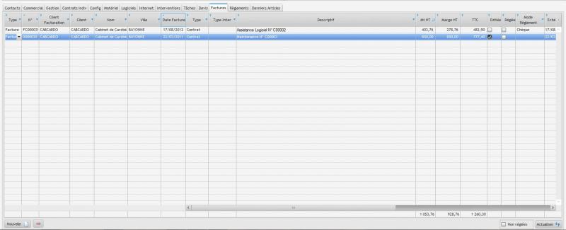 Possibilité de filtrer les factures, mais aussi de visualiser ou modifier une facture par un simple double-clic (selon vos droits).